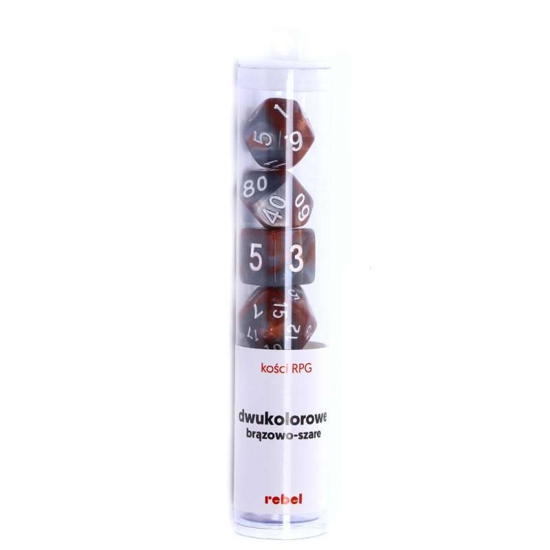Komplet siedmiu dwukolorowych kości marki Rebel o unikalnym charakterze. Są to jedne z najtrudniejszych w produkcji kości, ponieważ wymagają bardzo uważnego zmieszania dwóch tworzyw o różnym stopniu zabarwienia. Przy produkcji tych kości wszystko może się zdarzyć. Niewłaściwe proporcje, zarówno barwnika, jak i dwóch tworzyw, mogą nieodpowiednio zabarwić daną partię produkcyjną. Tak samo groźne może być zbyt szybkie lub zbyt wolne ich mieszanie.