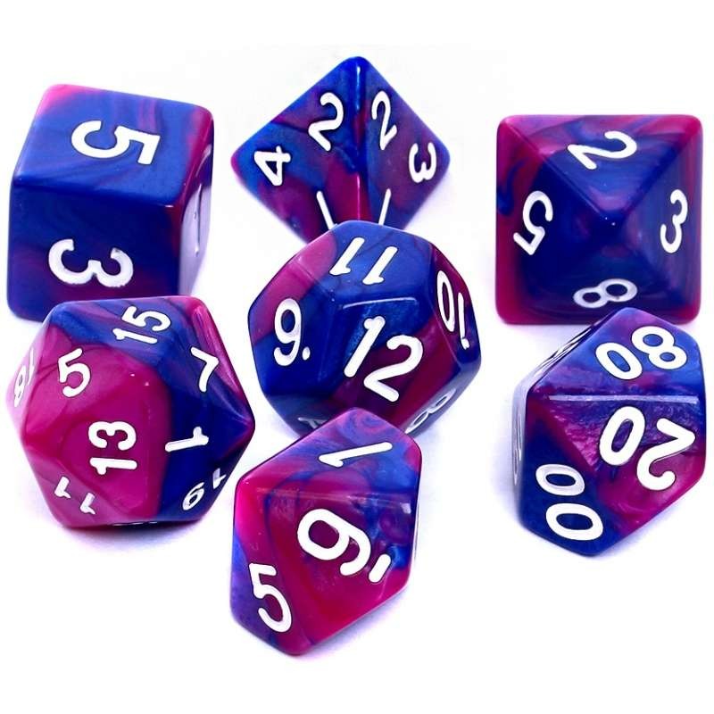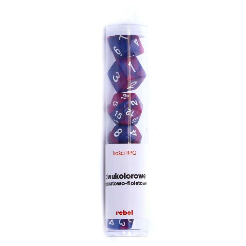 Komplet siedmiu dwukolorowych kości marki Rebel o unikalnym charakterze. Są to jedne z najtrudniejszych w produkcji kości, ponieważ wymagają bardzo uważnego zmieszania dwóch tworzyw o różnym stopniu zabarwienia. Przy produkcji tych kości wszystko może się zdarzyć. Niewłaściwe proporcje, zarówno barwnika, jak i dwóch tworzyw, mogą nieodpowiednio zabarwić daną partię produkcyjną. Tak samo groźne może być zbyt szybkie lub zbyt wolne ich mieszanie.