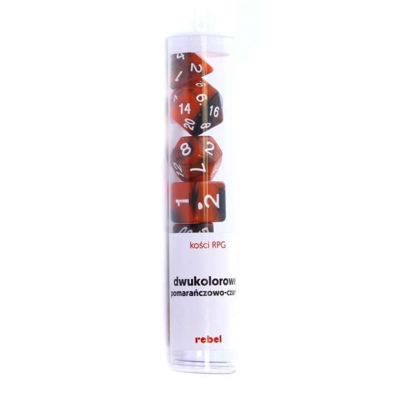 Komplet siedmiu dwukolorowych kości marki Rebel o unikalnym charakterze. Są to jedne z najtrudniejszych w produkcji kości, ponieważ wymagają bardzo uważnego zmieszania dwóch tworzyw o różnym stopniu zabarwienia. Przy produkcji tych kości wszystko może się zdarzyć. Niewłaściwe proporcje, zarówno barwnika, jak i dwóch tworzyw, mogą nieodpowiednio zabarwić daną partię produkcyjną. Tak samo groźne może być zbyt szybkie lub zbyt wolne ich mieszanie.