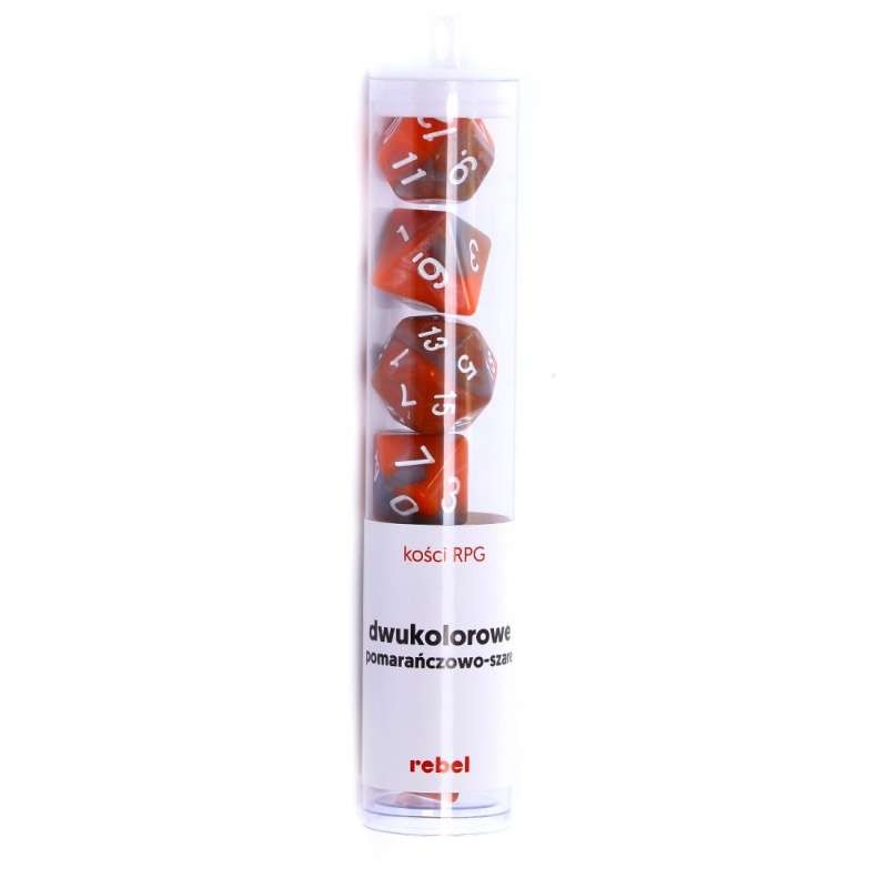 Komplet siedmiu dwukolorowych kości marki Rebel o unikalnym charakterze. Są to jedne z najtrudniejszych w produkcji kości, ponieważ wymagają bardzo uważnego zmieszania dwóch tworzyw o różnym stopniu zabarwienia. Przy produkcji tych kości wszystko może się zdarzyć. Niewłaściwe proporcje, zarówno barwnika, jak i dwóch tworzyw, mogą nieodpowiednio zabarwić daną partię produkcyjną. Tak samo groźne może być zbyt szybkie lub zbyt wolne ich mieszanie.