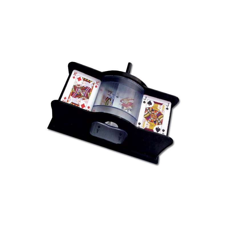 Tradycyjna maszynka do tasowania kart. Nie wymaga baterii. Wystarczy zakręcić korbką, by talia została potasowana.