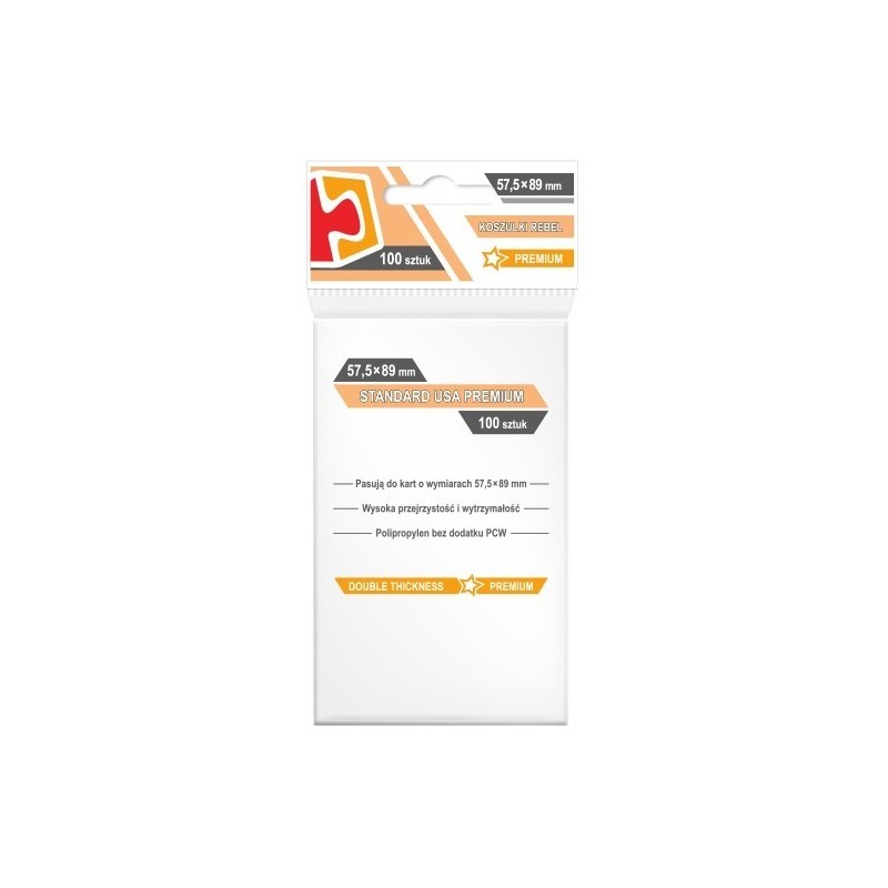 Opakowanie zawiera 100 koszulek na karty o rozmiarze 57,5x89 mm o podwójnej grubości.