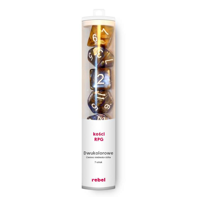 Komplet siedmiu dwukolorowych kości marki Rebel o unikalnym charakterze. Są to jedne z najtrudniejszych w produkcji kości, ponieważ wymagają bardzo uważnego zmieszania dwóch tworzyw o różnym stopniu zabarwienia. Przy produkcji tych kości wszystko może się zdarzyć. Niewłaściwe proporcje, zarówno barwnika, jak i dwóch tworzyw, mogą nieodpowiednio zabarwić daną partię produkcyjną. Tak samo groźne może być zbyt szybkie lub zbyt wolne ich mieszanie.