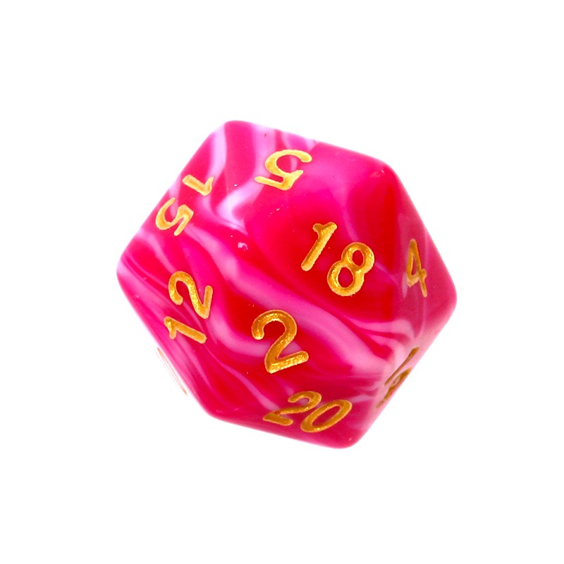 Komplet kości REBEL RPG - Dwukolorowe - Różowo-białe (złote cyfry)Komplet siedmiu dwukolorowych kości marki Rebel o unikalnym charakterze.