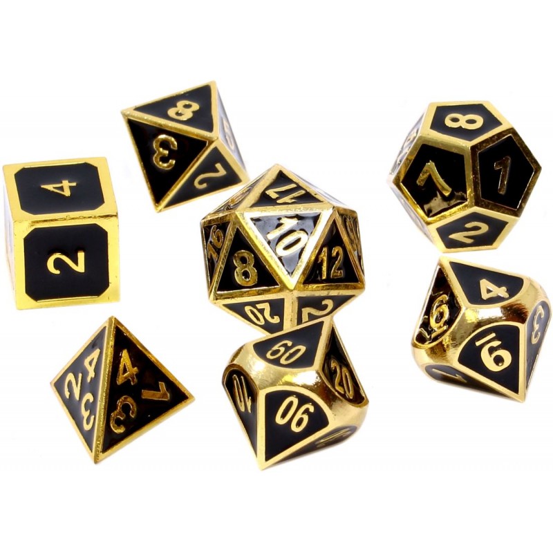 Komplet kości REBEL RPG - Metal - Tłoczone czarne złotoKomplet metalowych kości marki Rebel, czyli siedem wysokiej jakości kostek. Dzięki odpowiedniemu wyważeniu są bardzo wygodne w użyciu.
