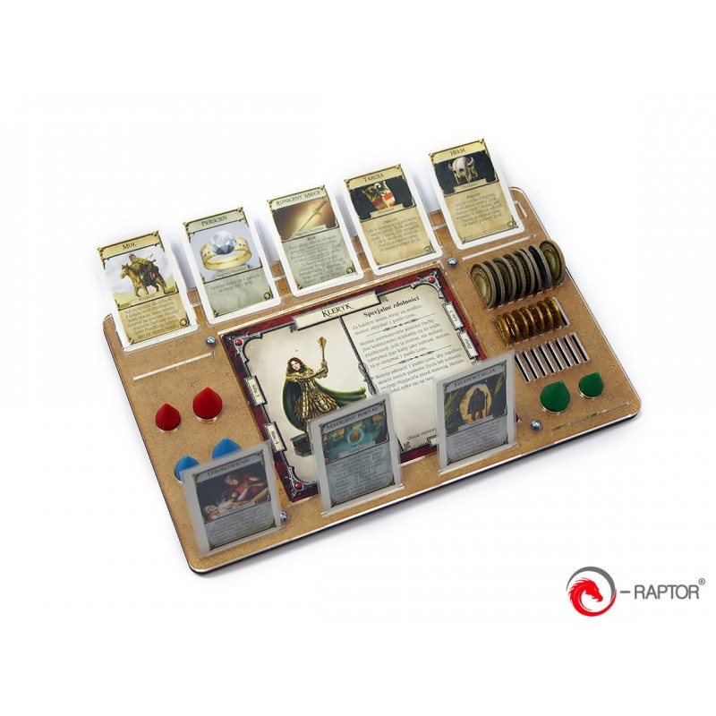 - Karta Poszukiwacza, karty zaklęć, ekwipunku, charakteru, żetony Siły, Mocy, Życia, Losu oraz żeton złota z łatwością umieścisz na swojej podstawce,