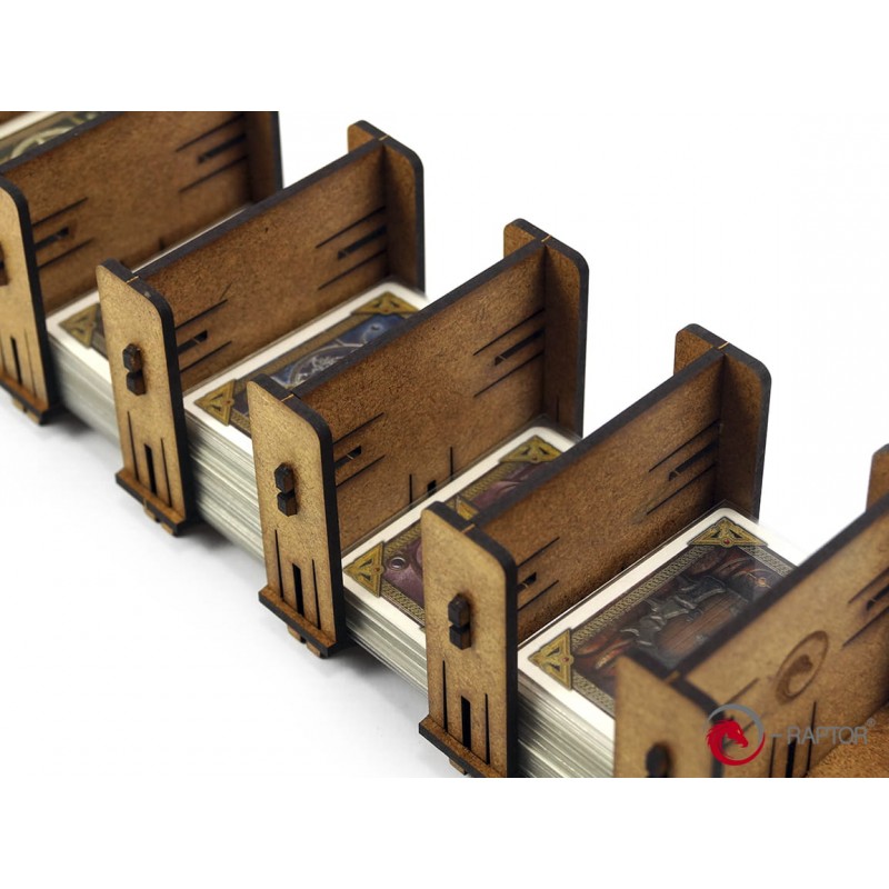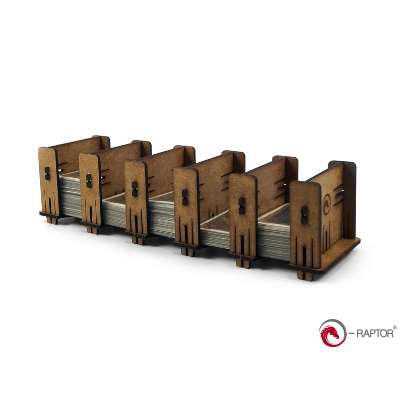 - wszystkie talie kart mają swoje miejsce, są dobrze widoczne i nie zajmują tyle miejsca jak przy rozgrywce bez podajnika,
