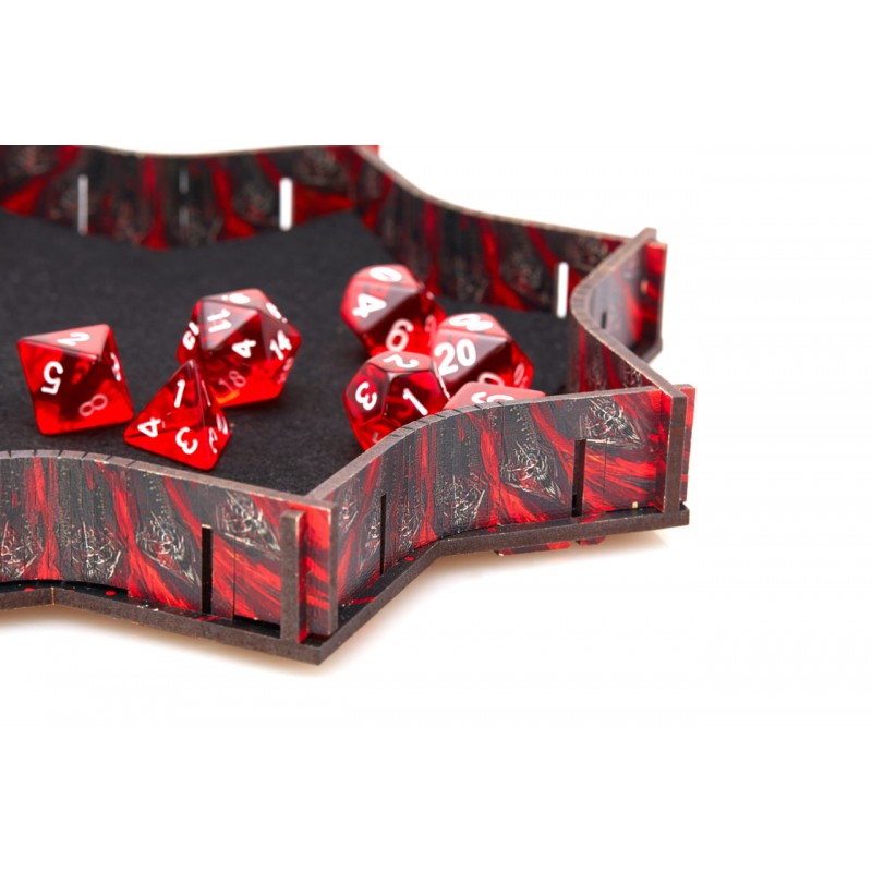 Tacka na kości firmy e-Raptor to akcesorium zaprojektowane, by urozmaicić i ułatwić graczom rozgrywkę. Dzięki niej kości nie będą rozrzucane po całym stole a rozgrywka stanie się bardziej uporządkowana!