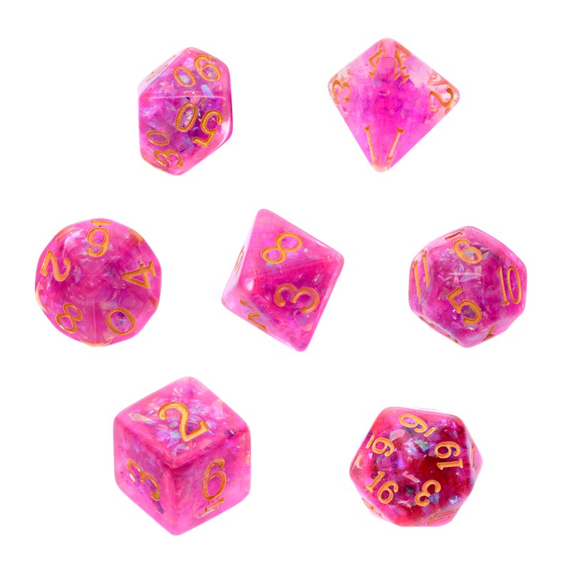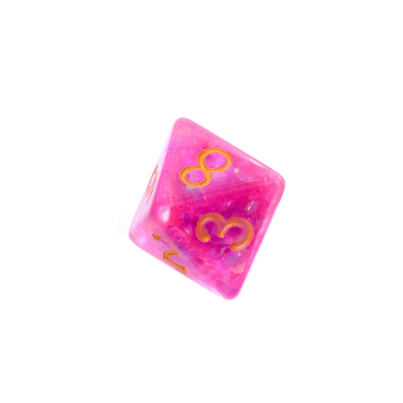 Komplet kości marki Rebel, czyli siedem niezwykle oryginalnych kości w stonowanych kolorach, wzbogaconych o mieniący się brokat, który przepięknie chwyta światło.