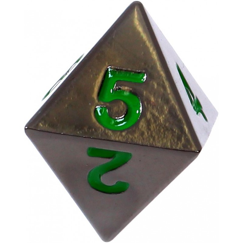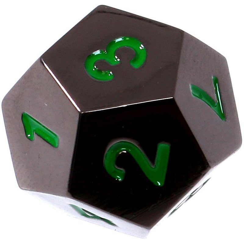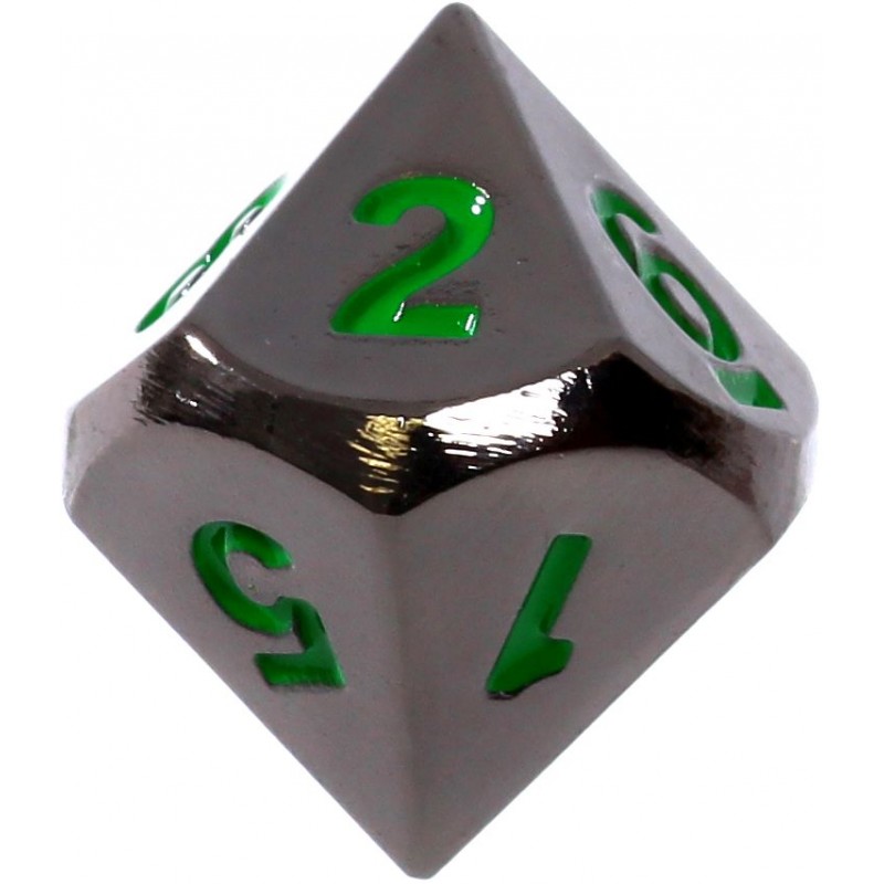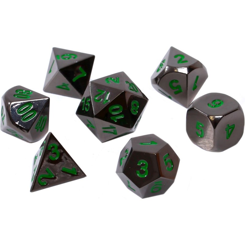 Komplet kości REBEL RPG - Metal - Czarna stal z zielonymi numeramiKomplet metalowych kości marki Rebel, czyli siedem wysokiej jakości kostek. Dzięki odpowiedniemu wyważeniu są bardzo wygodne w użyciu.