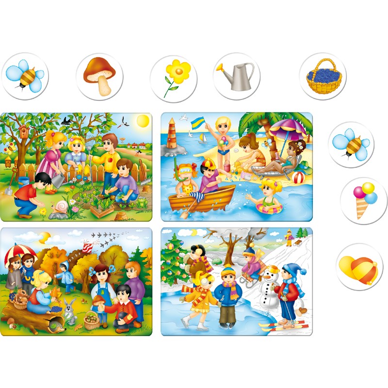 Kiedy pada śnieg a kiedy spadają liście? Jaka aura najbardziej sprzyja morskim kąpielom? Jeśli Twoje dziecko chce dowiedzieć się, jakie cechy charakteryzują zmieniające się w ciągu roku otoczenie, podaruj mu grę-loteryjkę „Pory roku”.