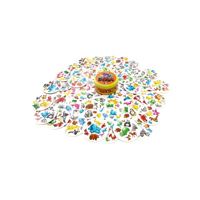 - Tylko "Dobble" ma takie wygodne i praktyczne karty. Okrągłe, mocne kartoniki świetnie się sprawdzają w czasie zabawy. Na każdej karcie znajdziecie 8 z 31 występujących w grze zwierzaków.
