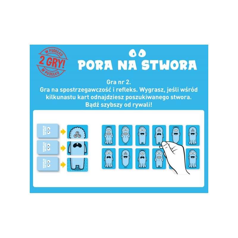 Pora na stwora to sympatyczna gra rodzinna, która odczaruje wszelkie strachy spod łóżka, pomoże ćwiczyć spostrzegawczość i sprytne planowanie.