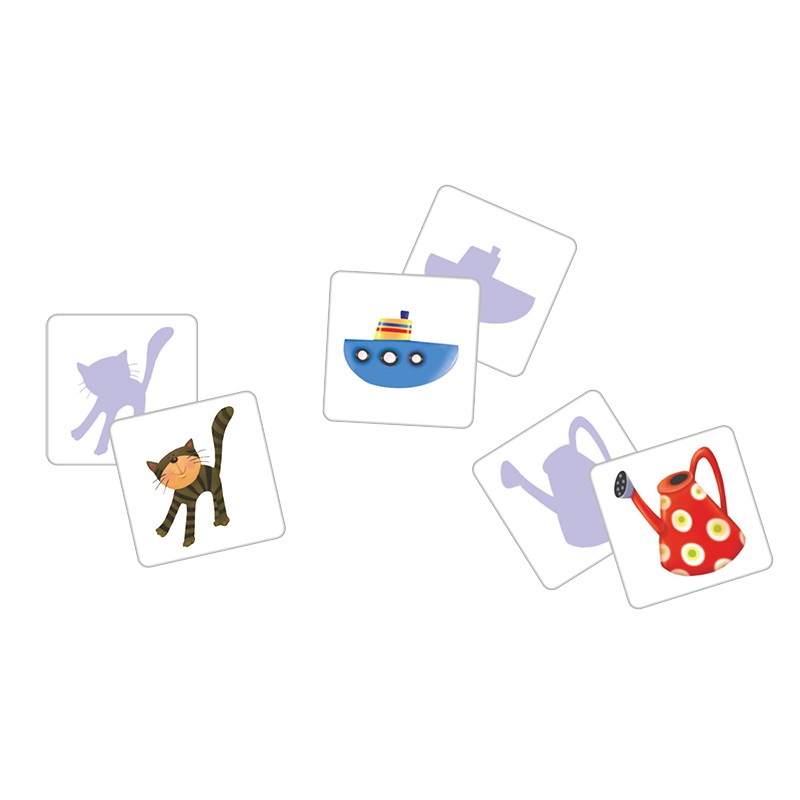 Dodatkowym atutem gry jest fakt, iż w przyjemny sposób uczy maluszka umiejętności kojarzenia i porównywania graficznych kształtów z rzeczywistymi przedmiotami. Zestaw zawiera 48 kolorowych tafelków z wizerunkami zwierzątek i zabawnych bajkowych postaci, a także instrukcje gry.