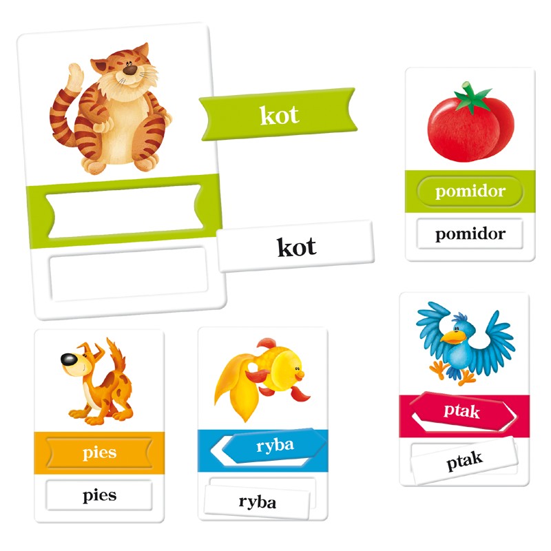 Układanka edukacyjna "Czytam sam" ma za zadanie pomóc dzieciom w nauce czytania na początkowym etapie edukacji. Zawiera 16 bardzo ładnych ilustracji z podpisami. Dziecko dopasowuje podpis, wkładając plakietkę o odpowiednim kształcie i kolorze w otwór pod rysunkiem lub, w etapie trudniejszym, dopasowuje podpis tylko po kształcie liter. Pozwala to zakodować w pamięci dziecka cały wyraz. Kolejne ćwiczenia pozwolą zapamiętać maluchowi i wyraz, i jak się go czyta.