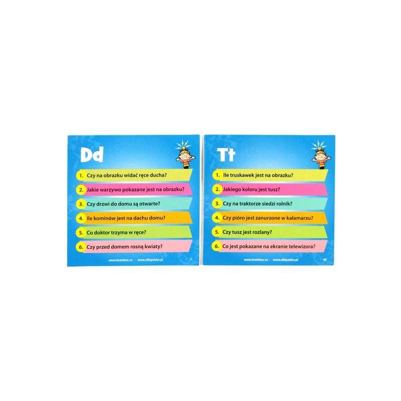 Patrz uważnie na kartę przez 10 sekund. Zapamiętaj kolory, kształty i inne szczegóły przedstawione na pięknych obrazkach. Odwróć kartę i odpowiedz na wszystkie pytania (odpowiedzi zapisz na kartce papieru). Jeśli odpowiedziałeś poprawnie na wszystkie pytania możesz zatrzymać kartę. Jeśli jakaś odpowiedź jest błędna odkładasz kartę do pudełka. Zobacz ile kart uda Ci się zdobyć w 10 minut.