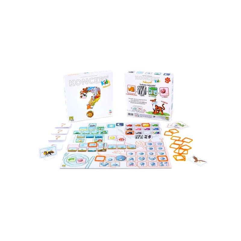 Wskazując symbole na planszy, pomóż innym członkom rodziny odgadnąć jak najwięcej haseł i razem cieszcie się zwycięstwem! Koncept Kids: Zwierzęta to oparta na współpracy wersja gry Koncept przeznaczona dla dzieci od 4 roku życia.