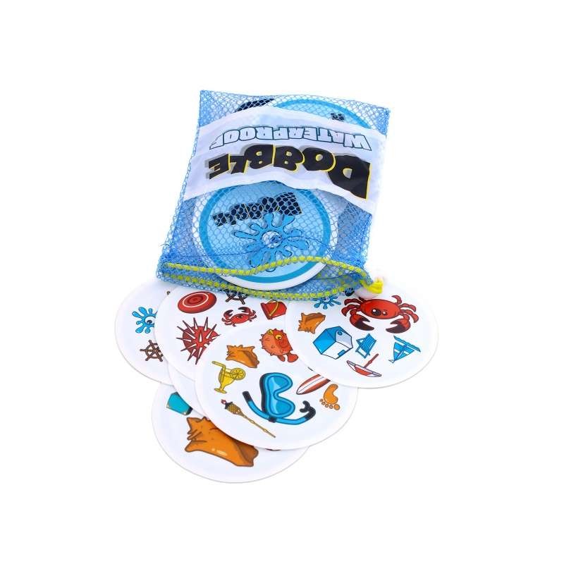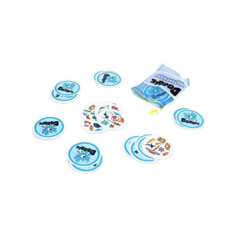 Dobble wodoodporne to 55 kart, na których znajdziecie po 8 symboli związanych z morzem i plażą. Na 2 dowolnych kartach zawsze znajduje się dokładnie 1 wspólny symbol. Niezależnie od tego, czy grasz w pubie, nad jeziorem, na basenie czy w wannie, Twoim celem jest jak najszybciej odnaleźć wspólny symbol i wygrać!