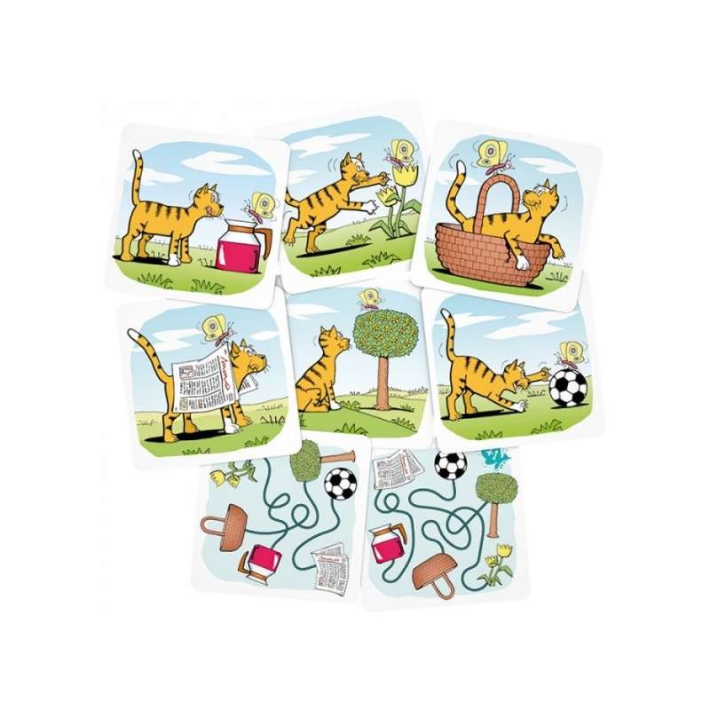 Motyl urządził kotu szalony rajd po łące. Wytęż zmysł obserwacji, prześledź drogę motyla i wskaż, na czym usiądzie. Krzycz: "motyla noga!", gdy zobaczysz, że kot złapał motyla.