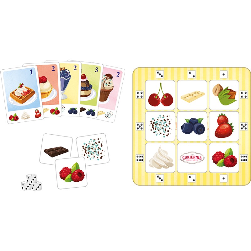 Zapraszamy Cię do Naszej CUKIERNI, gdzie zmierzysz się z szybką realizacją zamówień różnych deserów. Aby słodkości szybko opuściły blat kuchenny, należy wykazać się sprytem, logicznym myśleniem i mieć odrobinę szczęścia. Rywale będą chcieli Cię ubiec i skompletować wszystkie składniki do swoich deserów przed Tobą.