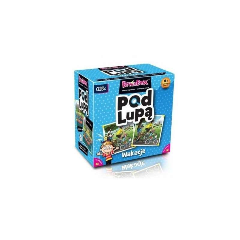 Pod Lupą Wakacje to karty obrazujące różne aktywności związane z wakacjami, wypoczynkiem oraz sportami.