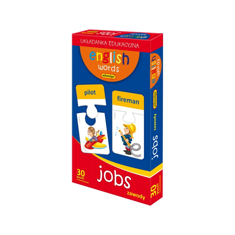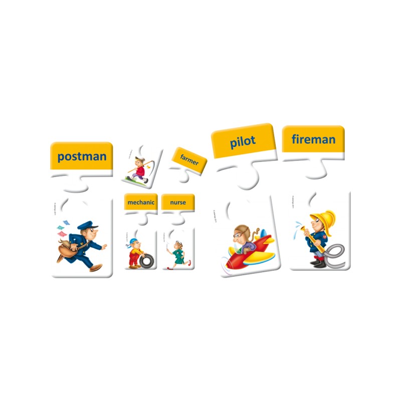 Zestaw dwuelementowych puzzli, składający się aż z 60 elementów. Podczas układania dzieci w naturalny sposób zapoznają się z zapisem angielskich słówek. Zestaw edukacyjny świetnie sprawdza się zarówno podczas samodzielnej zabawy jak i w dużej grupie.