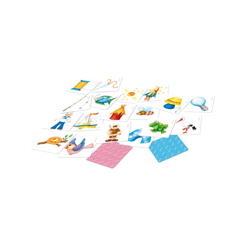 W skład zestawu wchodzi 48 sztywnych plakietek podzielonych na dwie grupy, rozróżnionych kolorem na drugiej stronie kartonika oraz instrukcję do 3 gier. Gra rozwija zdolność analogicznego myślenia, a także skłania do szukania podobieństw między przedmiotami. Taka zdolność przydaje się w szkole i pozwala zrozumieć dziecku otaczający go świat.