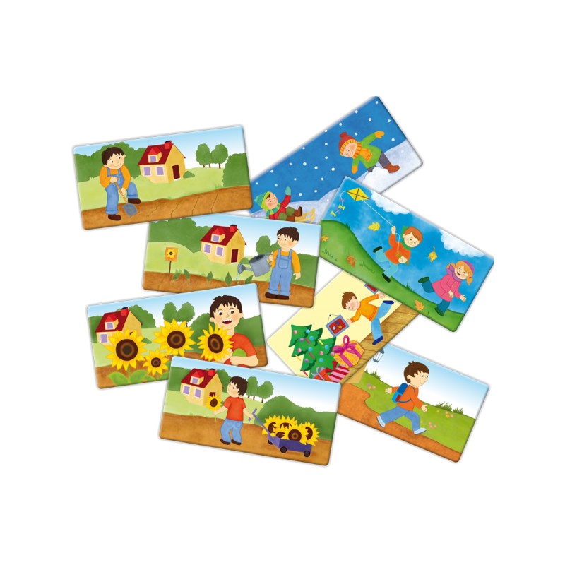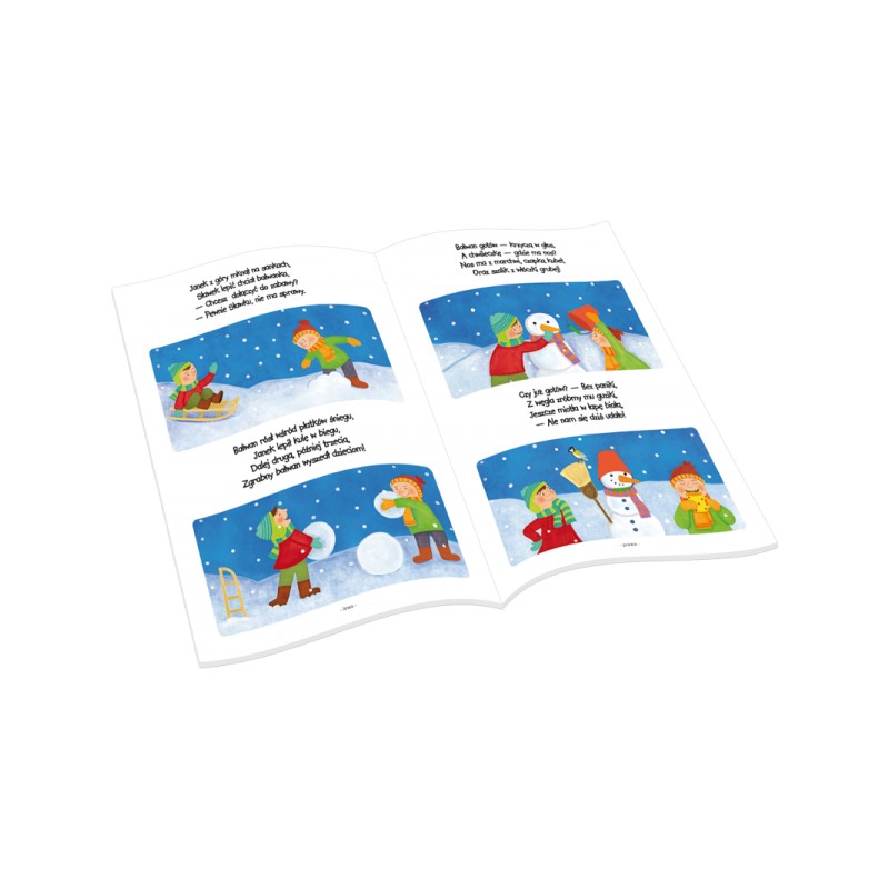 W skład zestawu wchodzą 24 plakietki, z których można ułożyć 6 historyjek oraz książeczka z wierszykami i instrukcją.