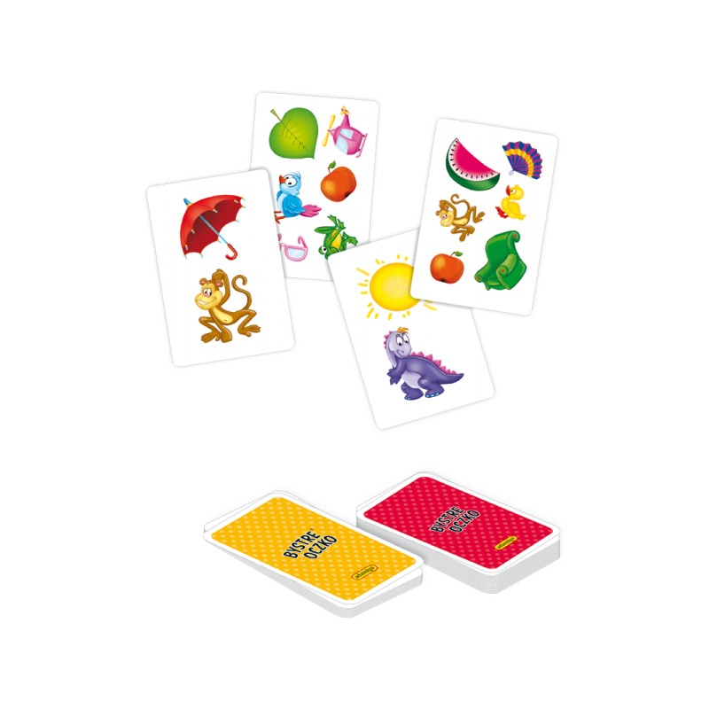 Zestaw zawiera 48 kart o wym. 11 cm x 7,4 cm oraz instrukcje z opisem pięciu wesołych gier rodzinnych. Gry zawierają elementy edukacyjne. Podczas zabawy gracze ćwiczą spostrzegawczość, pamięć i refleks.