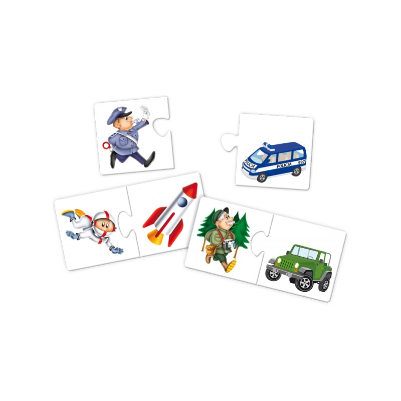 Kuferek zawiera 24 sztuki dużych puzzli, z których można ułożyć 12 par oraz instrukcję do 2 gier.