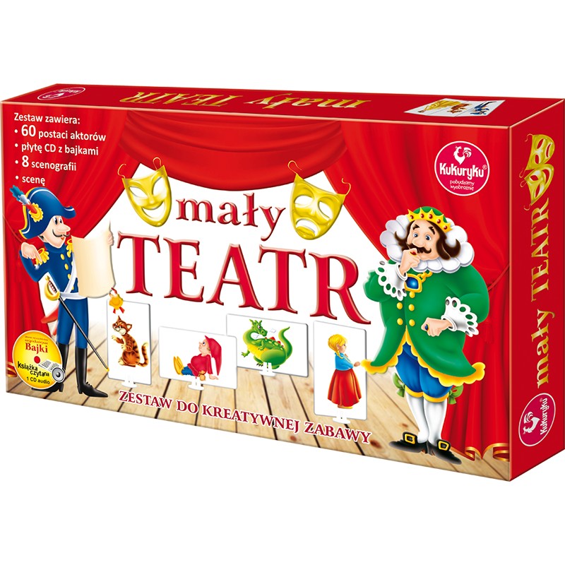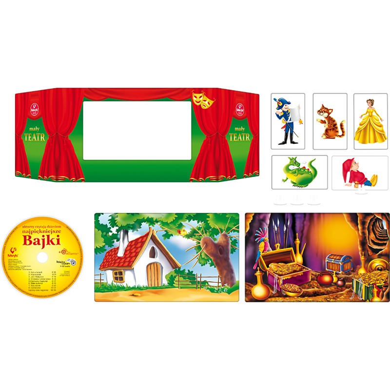 „Mały teatr” to zestaw doskonałych pomocy do zabawy w teatr. Pobudza wyobraźnię dziecka, kształtuje wrażliwość. Idealna zabawa do poznawania bajkowych światów. W zestawie najpiękniejsze bajki.