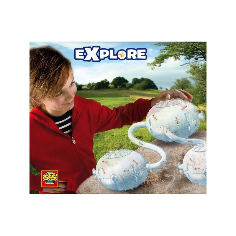 Linia produktów Explore. Ten wspaniały zestaw do zrobienia własnego mrówkarium pomoże dziecku w poszerzeniu wiedzy na temat małych stworzeń. Dzięki połączeniu kul możemy obserwować co robią owady w nowym otoczeniu. Ze zwierzątkami należy obchodzić się bardzo ostrożnie, a po obserwacji wypuścić je do naturalnego środowiska. Zestaw odpowiedni dla dzieci od 5 lat. Wyprodukowano w Holandii.