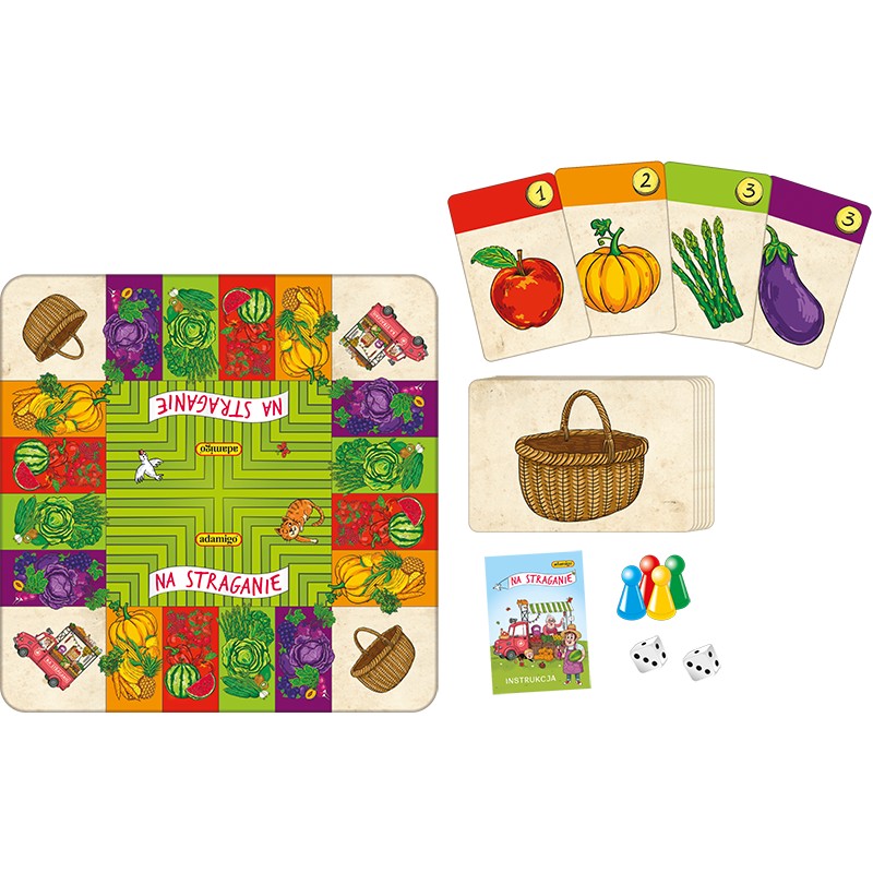Dzięki niej Twoje dziecko pozna większość rodzajów warzyw i owoców, a być może ta wiedza jeszcze bardziej zachęci go do ich częstszego spożywania. Gra zawiera 24 karty z zagadkami w formie zabawnych wierszyków, 24 sztywne tafelki, planszę z kołem kolorów, 45 kartonowych żetonów, 2 kostki do gry, a także instrukcję. Gra „Na straganie” ćwiczy pamięć, refleks i umiejętność kojarzenia. Twój maluch będzie mógł sam poprosić o ulubiony owoc podczas wspólnych zakupów na straganie.