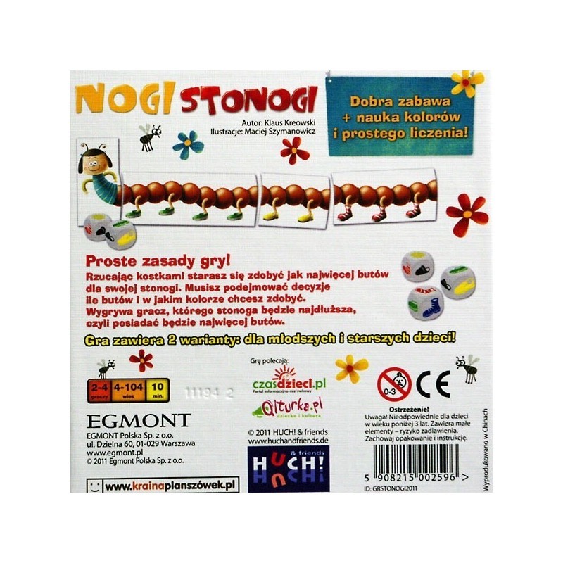 dla swoich stonóg. Muszą podejmować decyzje ile butów i w jakich kolorach chcą zdobyć w kolejnych rundach. Wygra gracz, którego stonoga posiadać będzie najwięcej butów. Urocza, przyjazna oprawa graficzna i wciągająca fabuła sprawiają, że dziecko nawet nie zauważa, że uczy się kolorów oraz dodawania i odejmowania dobrze się przy tym bawiąc!