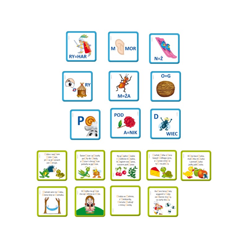 Zachęcamy do wesołej zabawy, podczas której gracze utrwalą pisownię wyrazów z: ż, rz, ch, h, ó, u. Celem gry jest nauka ortografii w konwencji szlachetnej rywalizacji, poprzez wzrokowe kodowanie trudnych wyrazów. Śmieszne i żartobliwe wierszyki pozwolą na skuteczne utrwalenie poprawnej, niełatwej polskiej pisowni.