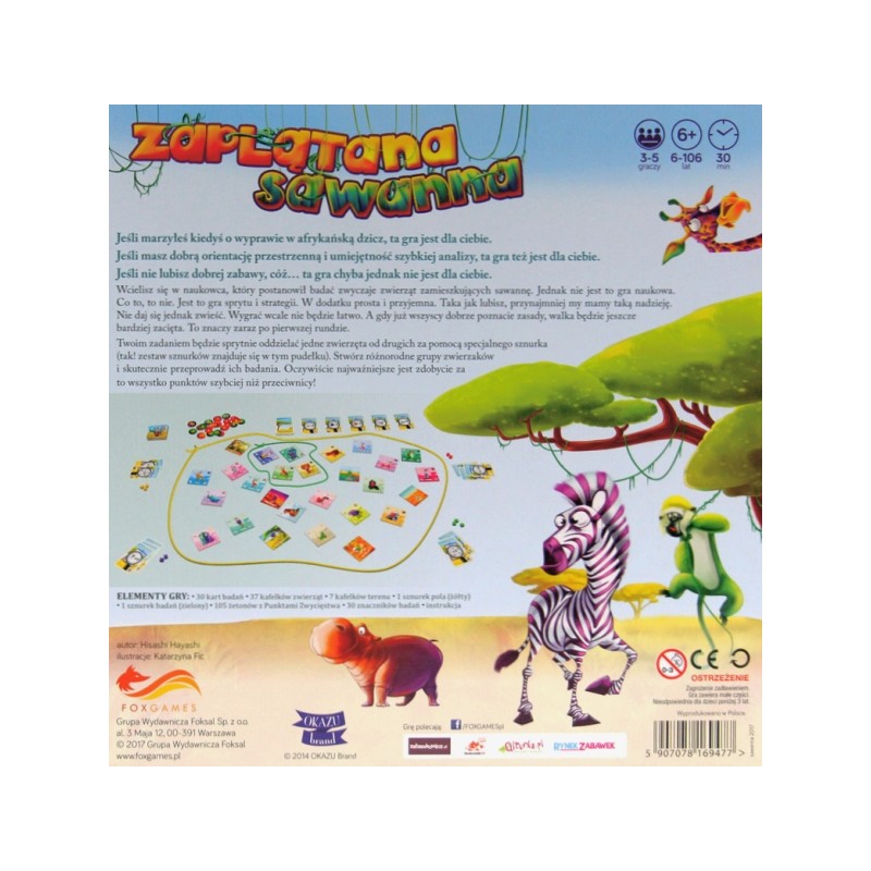 Zaplątana Sawanna to gra sprytu i strategii. W dodatku prosta i przyjemna. Nie daj się jednak zwieść. Wygrać wcale nie będzie łatwo. A gdy już wszyscy dobrze poznacie zasady, walka będzie jeszcze bardziej zacięta.