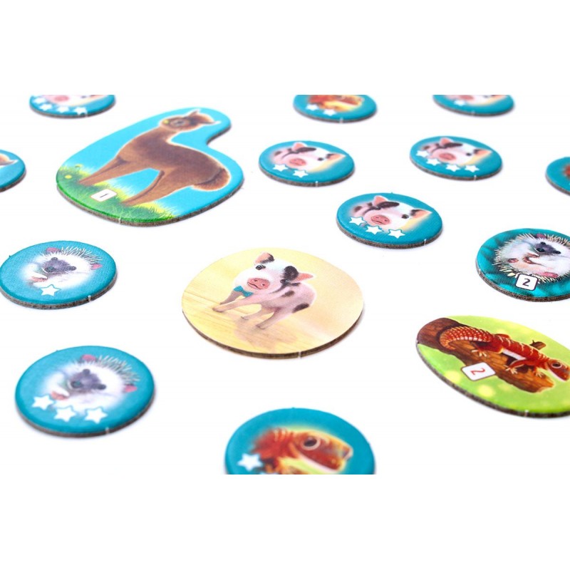 - 4 żetony zwierzaków (alpaka, gekon, jeż, świnka),