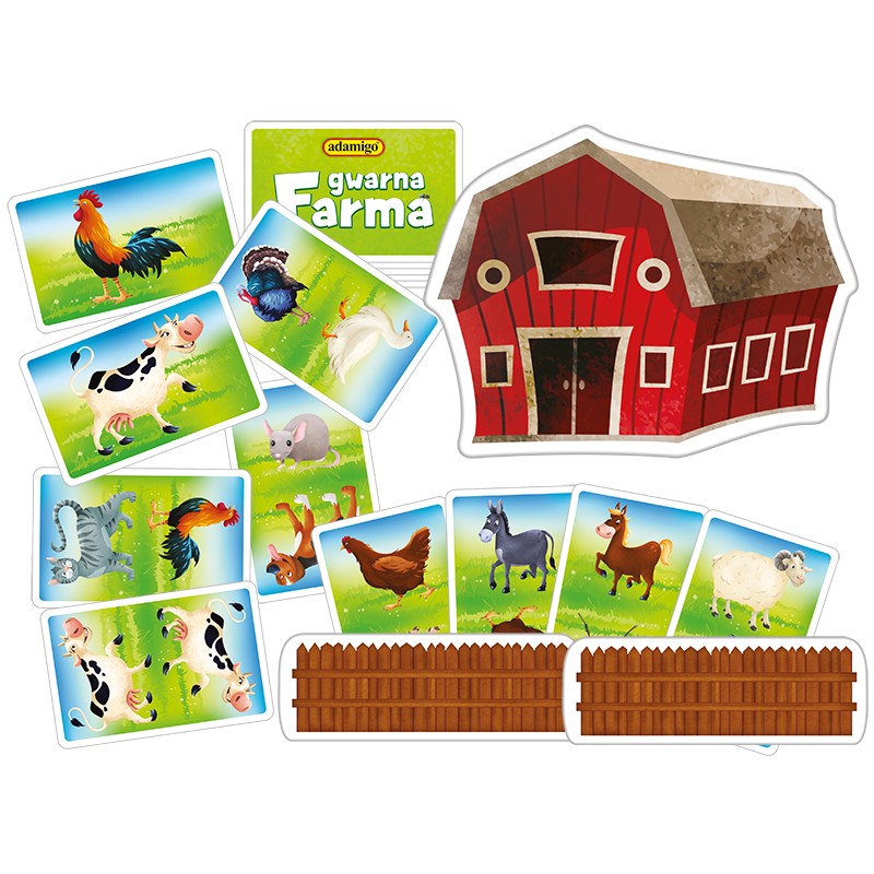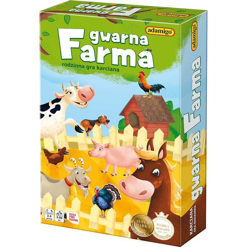 Gwarna Farma to dynamiczna karciana rozgrywka zapewniająca całej rodzinie świetną zabawę. Gdy znajdziesz co najmniej trzy takie same zwierzęta na farmie, musisz jak najszybciej położyć rękę na stodole i wydać odpowiedni odgłos. Dzięki temu zdobędziesz zwierzęta do swojego gospodarstwa. Podczas gry gracze muszą wykazać się refleksem i umiejętnością naśladowania wielu zwierzęcych odgłosów!