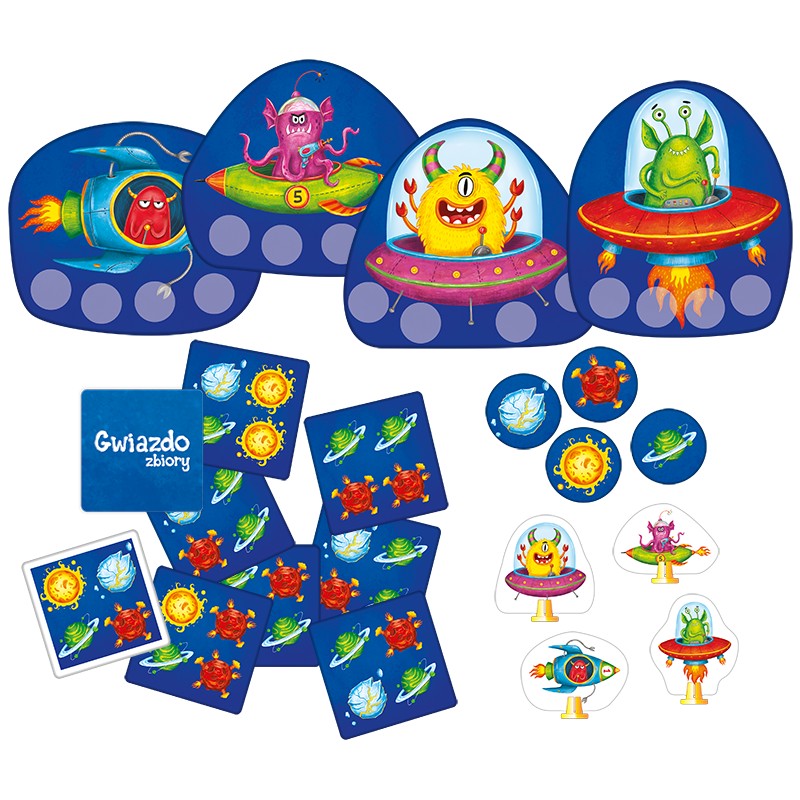 Jesteś w odległej galaktyce, gdzie wcielasz się w kosmitę, który chce zdobyć nowe terytoria. Latając swym statkiem kosmicznym, starasz się podbić jak największą konstelację. Gwiazdozbiory to gra, która uczy tworzenia zbiorów, ćwiczy pamięć i koncentrację, rozwija logiczne myślenie.