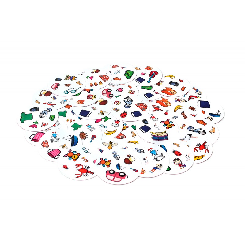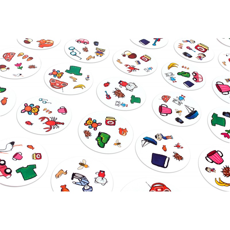 Zadanie jest proste: spójrz na pierwszą kartę, którą trzymasz w ręku oraz na tę, która leży na środku stołu. Znajdź na nich wspólny symbol, nazwij go i szybko pozbądź się swojej karty. Teraz następna! Tylko nie zwątp, dwie dowolne karty zawsze łączy jeden wspólny obrazek.