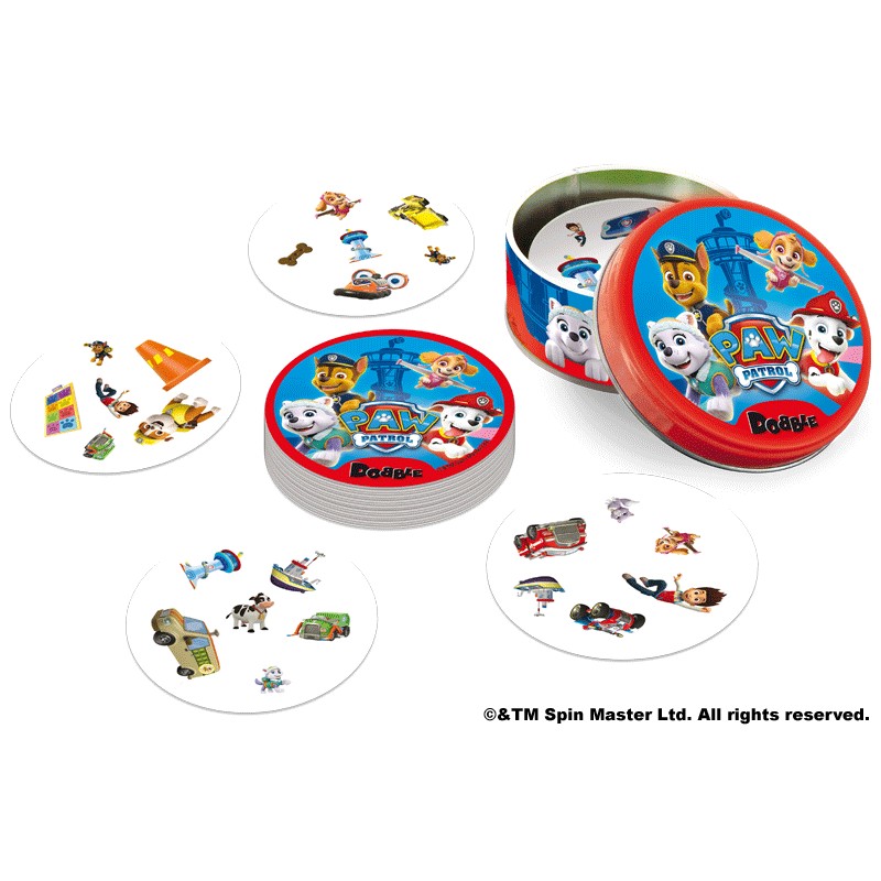 Marshall, Rubble, Chase, Rocky, Zuma, Skye! Bohaterskie psiaki, które na co dzień dzielnie pomagają potrzebującym, zawitały na karty Dobble, by wspierać najmłodszych w ćwiczeniu refleksu i spostrzegawczości! Czy uda Ci się wypatrzyć parę identycznych bohaterów lub charakterystycznych przedmiotów zanim zrobią to przeciwnicy?