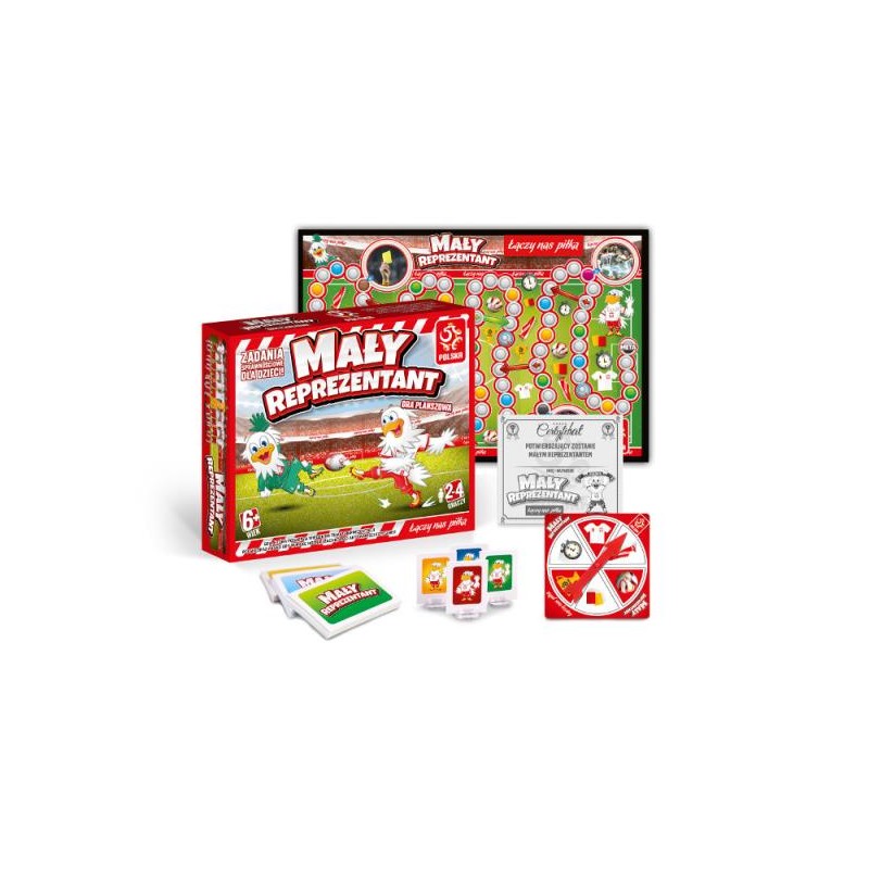 GRA PLANSZOWA NA LICENCJI PZPN GRA PLANSZOWA DLA 2-4 GRACZY POLEGAJĄCA NA DOTARCIU PIONKIEM DO METY. BY WYGRAĆ, NALEŻY ODPOWIADAĆ PRAWIDŁOWO NA WYLOSOWANE PYTANIA O TEMATYCE PIŁKARSKIEJ I WYKONYWAĆ ZADANIA SPRAWNOŚCIOWE