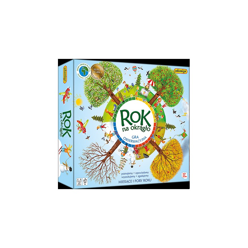 Rok na okrągło to wyjątkowa gra edukacyjna, w którą można bawić się na wiele sposobów. Duża, okrągła plansza pozwala na zrozumienie cykliczności zmian zachodzących w przyrodzie. Każda pora roku jest wyróżniona innym kolorem pół oraz ilustracją zmieniającego się drzewa i jego otoczenia.