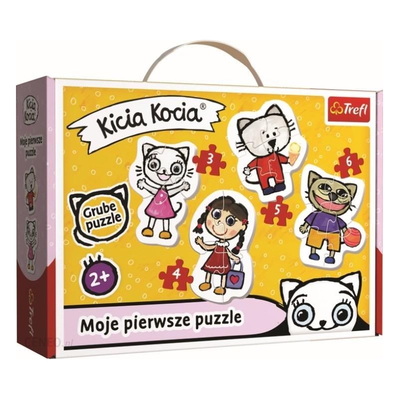 Żywe kolory i przyjazne kształty zachęcają maluchy do zabawy. Piękne, kolorowe ilustracje z Kicią Kocią przyciągają wzrok dzieci i sprawiają, że zabawa staje się jeszcze ciekawsza. Puzzle składające się z 4 niezależnych układanek, a zróżnicowana liczba elementów w każdej z nich pozwala na zabawę progresywną.