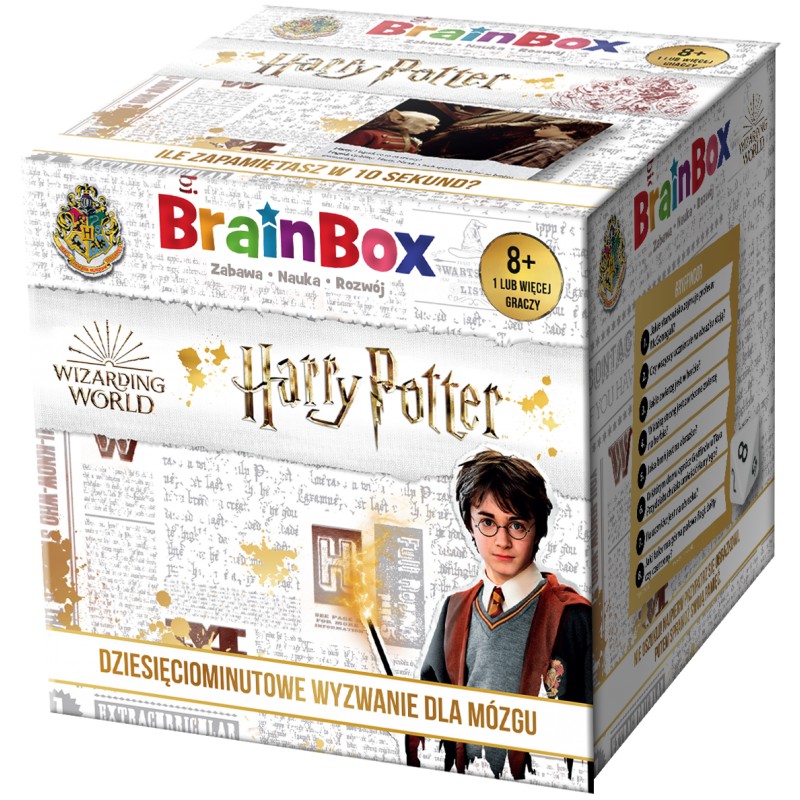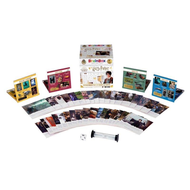 BrainBox - Harry Potter to nie lada wyzwanie dla wszystkich fanów małego czarodzieja. Na 55 kartach znajdziesz kultowe sceny ze wszystkich 8 filmów z serii, a także 440 pytań o ulubionych bohaterów, kluczowe momenty i dialogi. Sprawdź swoją wiedzę z różnych obszarów: od tradycji domów po Ministerstwo Magii!