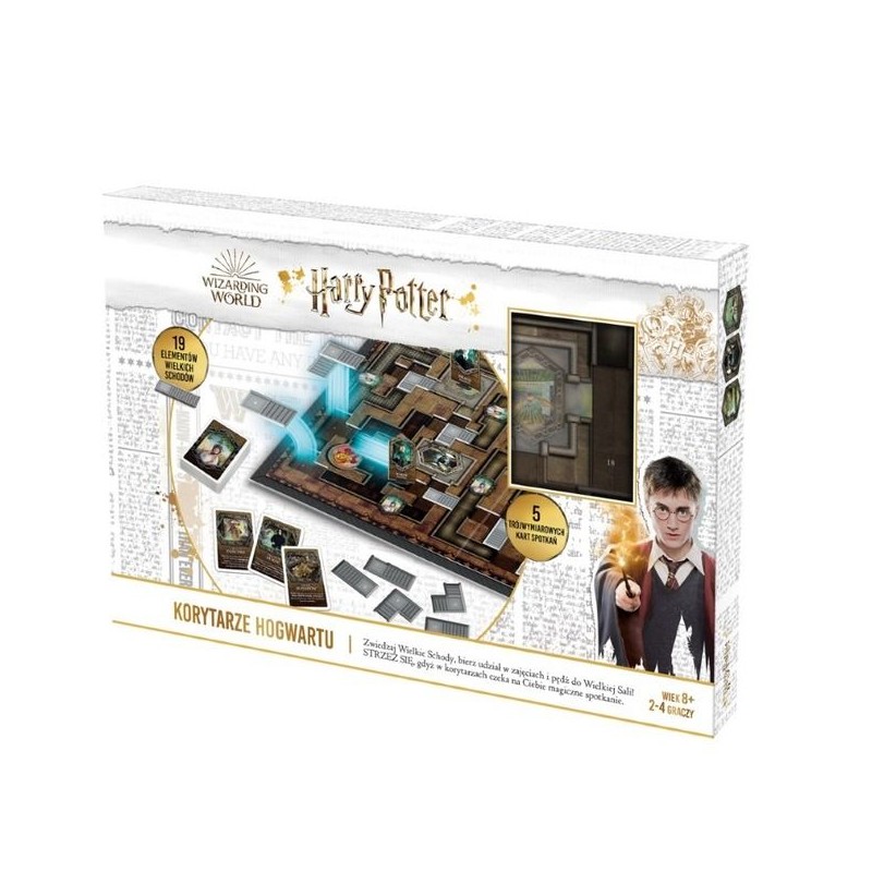 Śledź ruchowe schody w grze taktycznej i dotrzyj do Wielkiej Sali w Hogwarcie jako pierwszy. Zmieniaj ułożenie schodów, aby poruszać się po planszy. Zwiedzaj Wielkie Schody, bierz udział w zajęciach i pędź do Wielkiej Sali!
