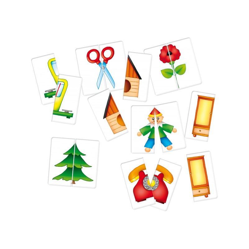 Czy dwie części jednego obrazu są identyczne? Czy strona lewa jest taka sama jak strona prawa? Układanka obrazkowa „Symetria” pozwoli Twojemu dziecku znaleźć odpowiedzi na te pytania. W zestawie znajduje się wiele obrazków, a każdy z nich podzielony jest na dwie części.