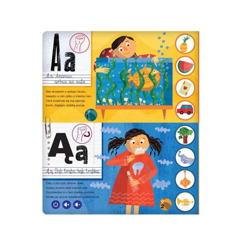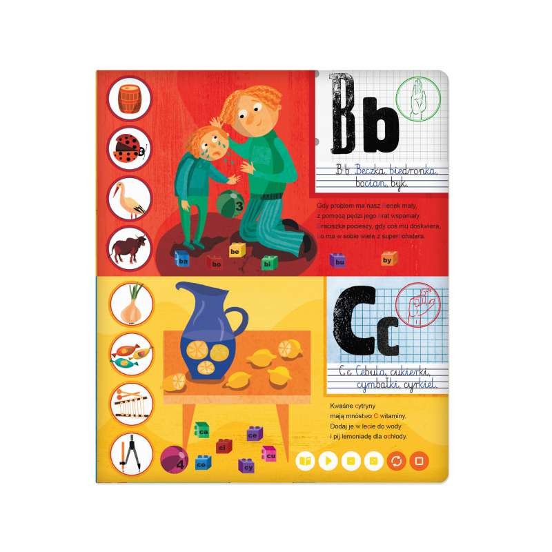 Książka Moje pierwsze literki to pomoc w procesie nauki czytania. Dzięki tej interaktywnej lekturze dzieci poznają litery, litery pisane i znaki migowe. Nauczą się odczytywać sylaby i dzielić na nie wyrazy, co ułatwi im naukę płynnego czytania.