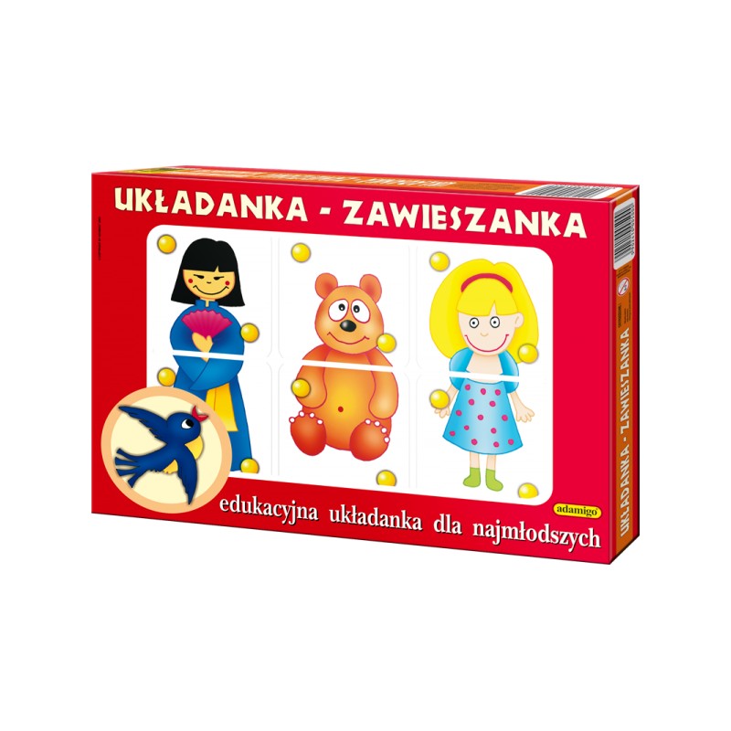 „Układanka-zawieszanka” to edukacyjna gra dla najmłodszych, dzięki której dziecko poznaje przedmioty i uczy się nowych wyrazów.