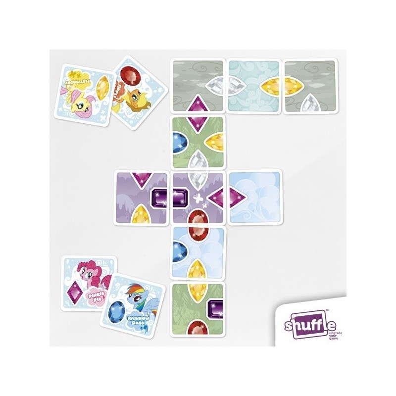 Celestia uwielbia bawić się z kucykami zamieniając cenne kamienie w pył, który rozsypuje po Equestrii. Wybierz ulubione kucyki i odwróć pierwszą kartę z wierzchu, a być może będzie na niej klejnot, który pragniesz zdobyć. Karty z klejnotami muszą pasować do sąsiadujących kart ze wszystkich stron. Wygrywa ten, kto najlepiej uzupełni klejnoty.